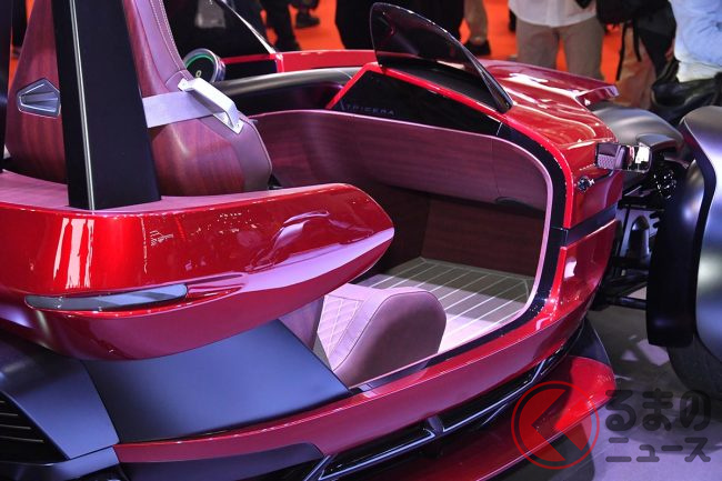 2023年の同イベントで発表された「TRICERA」の後継モデルと位置づけられるTRICERA protoは、実際に走行できる点が大きな違いです。宮本さんによれば、「私たちが検討し、一番楽しいと思っているのが、車速域で言うと20kmから30kmぐらいで、それらを踏まえてホイールベースであったり、車両のサイズ感を決めています」とのことで、特定の速度域での楽しさを追求して設計されています。