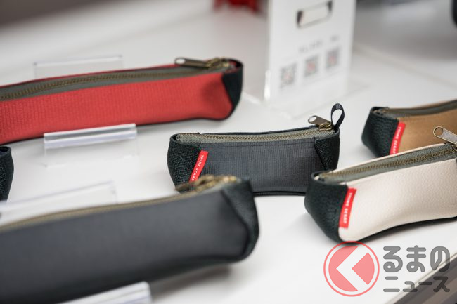 Think Scrapではシートベルト以外にも他メーカーから発生した自動車用内装材や建設用のターポリン素材などを活用しており、ペンケース・名刺入れ・トートバッグなどの開発・製造を行っています。製品はすべて未着色で、素材色のまま。センスが良く、極めて丈夫な、生活を彩る機能的なアイテムといえます。