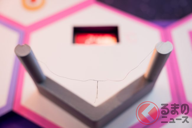 東海理化 CNTプロジェクト 技術開発グループ グループ長の松浦司氏によると、カーボンナノチューブは、将来的には宇宙で活躍する乗り物での活用が期待できるとのこと。トンネル内に「惑星」が浮かんでいるのはまさにそれが理由です。夢がある技術だと感じました。