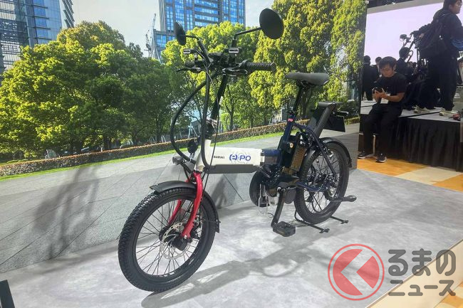 スズキは、2025年10月31日から一般公開を開始した「ジャパンモビリティショー2025」で、新たな電動モビリティとしてペダル付き原動機付自転車「e-PO(イーポ)」を公開しました。