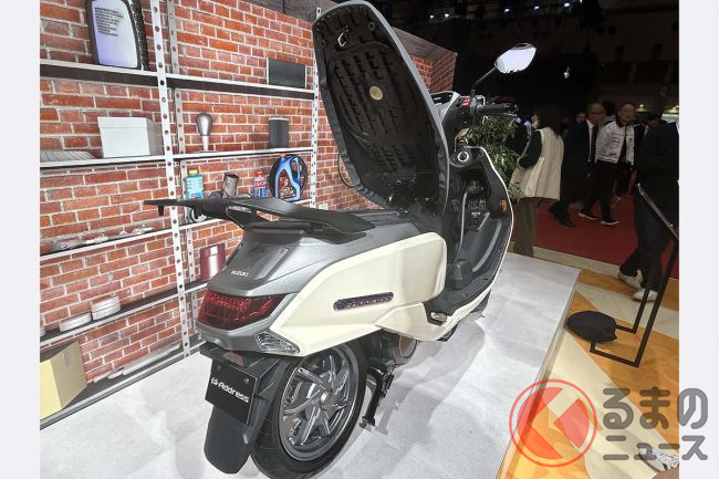 日本初展示!スズキ「e-アドレス」 実用性と安心性を両立した次世代EVスクーター