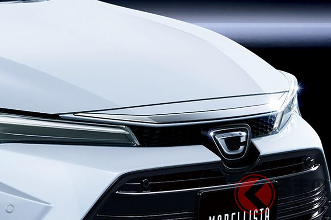 新車227万円! トヨタ新「“5人乗り”セダン」がスゴい! メッキ仕上げの“上質エアロ”もイイ! “大径ホイール”が超カッコいい「新カローラ」“モデリスタ仕様”とは?