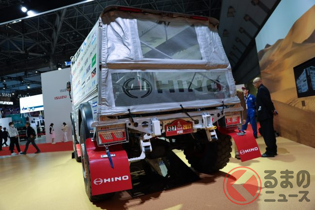 このほか、2026年春ごろ新モデル発売予定の大型観光バス「セレガ」(参考出品・初展示)、こちらも2026年夏ごろに新モデルが発売予定されている、超低床・ウォークスルーの小型BEVトラック「デュトロ Z EV」(初展示)、2026年内の発売がアナウンスされている中型トラック「レンジャー」(初展示)、そして「日野レンジャー」をベースに開発された「ダカール・ラリー参戦車」(2019年参戦)も展示しています。