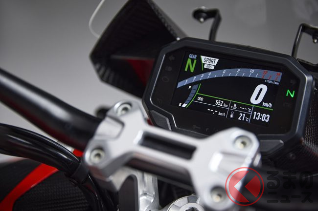 装備面も充実しており、カワサキと共同で開発したクルーズコントロールなどの電子制御システムや、アシスト&スリッパークラッチ、フルカラーTFTスクリーン、LEDライトなどが採用されています。