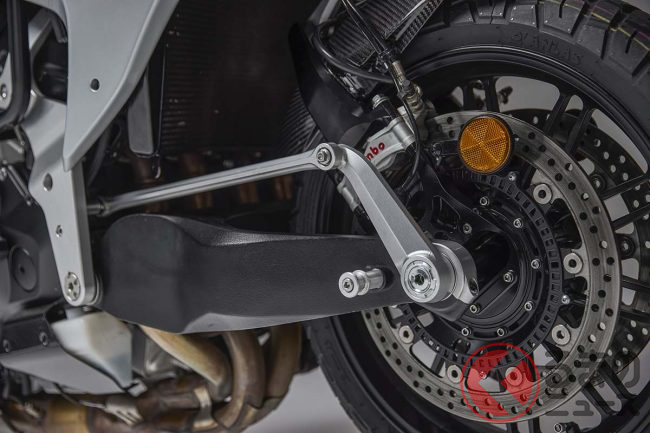 アドベンチャーモデルとしての性能を最適化するため、フロントの重量配分はTESI H2の53%から52.5%へ変更されています。サスペンションには、標準でオーリンズ製TTXサスペンションが備わります。さらに海外仕様では、オプションとしてマルゾッキ製のセミアクティブサスペンションシステムも選択可能で、ストローク量をノーマルの114mmから145mmまで増加させることができます。