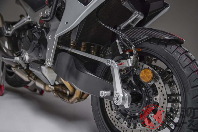 加えて、アクラポビッチ製のチタンスリップオンマフラーも標準で装備されます。このマフラーには、レーザーエッチングされたロゴやカーボンエンドキャップ、カーボンヒートシールドが備わるなど、豪華な仕様となっています。