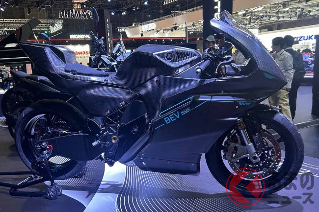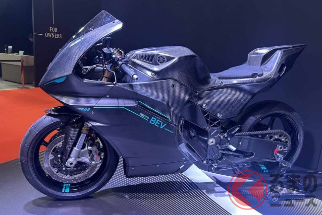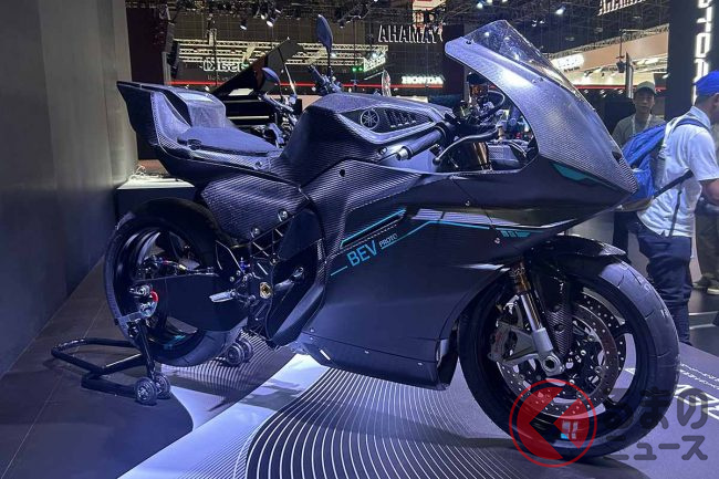 ヤマハによると、PROTO BEVは「FUNの最大化」を目指して開発された電動スーパースポーツで、大型バッテリーを搭載しながらも軽量・コンパクト化を徹底し、俊敏なレスポンスと扱いやすさの両立を目指しているといいます。
