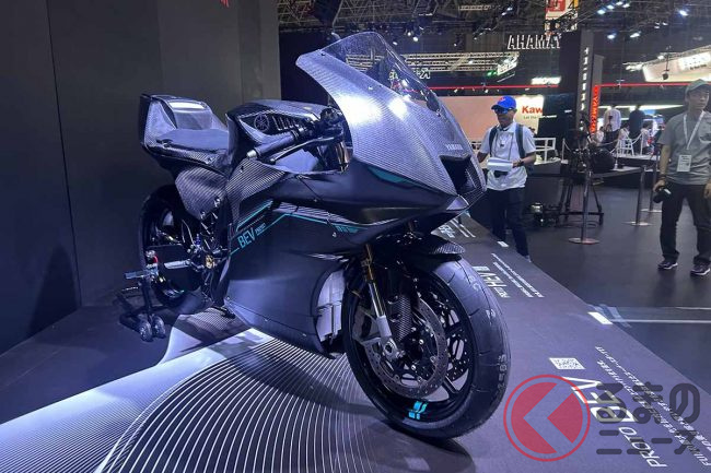 ヤマハの“新”「スーパースポーツ」JMS2025で初公開! 「大型バッテリーEVならではのFUN」を追求した実走可能なプロトタイプ 「PROTO BEV」の特徴とは?