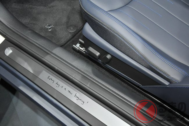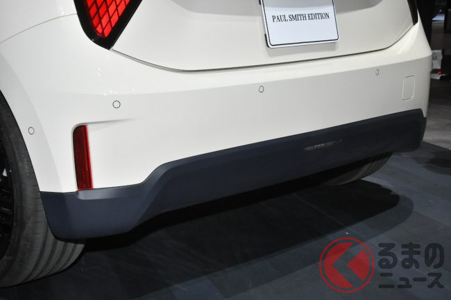 また、内装カラーがブラック基調である点も先代からの継承。さらに、センターディスプレイには3種類のオリジナル背景テーマが用意され、リアテールゲートのハンドルにはポールスミスのサインも刻まれるなど、随所に特別感が漂います。