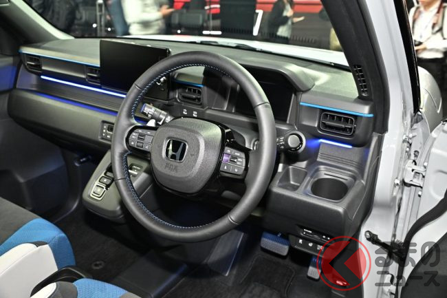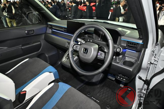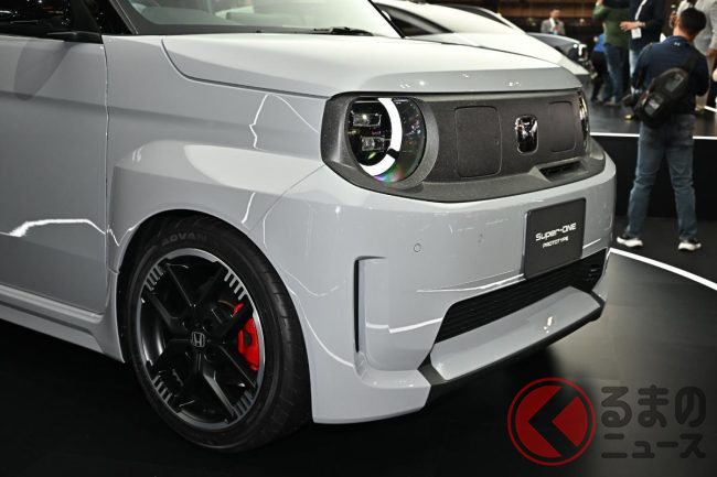 ホンダ斬新「ちいさな“ホットハッチ”」世界初公開! レトロ風な丸目ライト&「ワイドボディ」がカッコイイ! “スポーティな専用内装”も魅力! 2026年に発売予定の「Super-ONE」について聞いてみた!