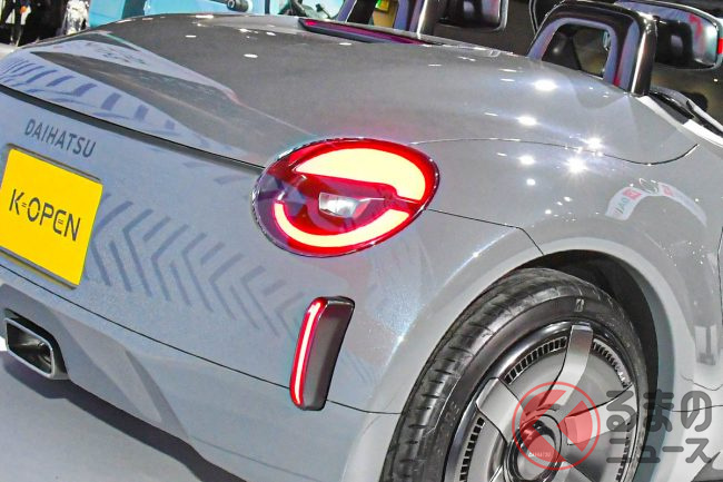 ダイハツ“新”「“FR”コペン」世界初公開! 軽規格ボディ×「フロントミッドシップ」の「新型コペン」どうなる? “ルーフのタイプ”も色々検討中な次期型示す「K-OPEN」登場