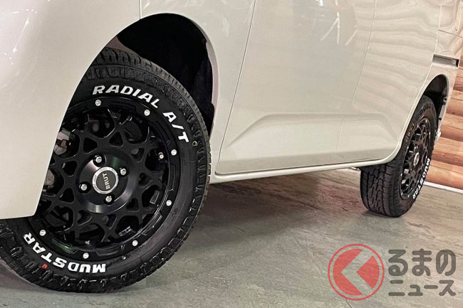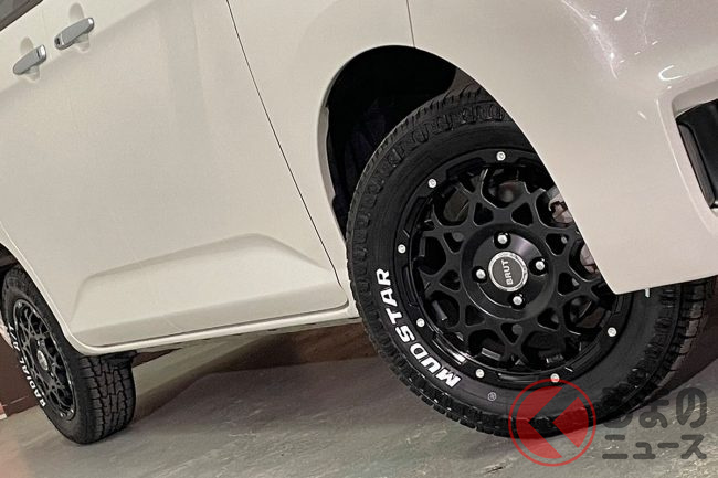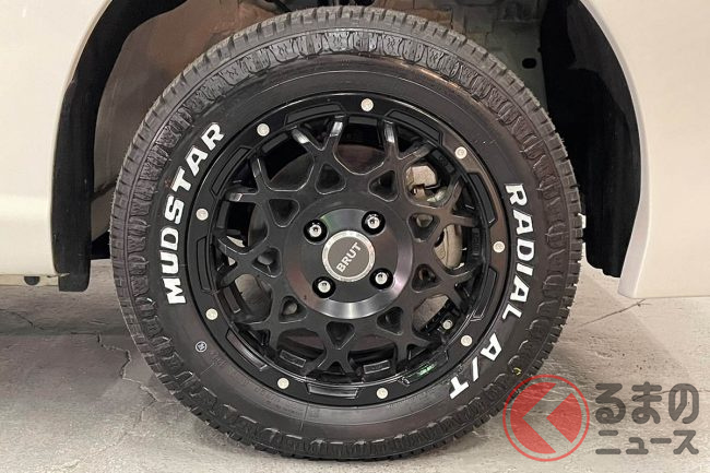 具体的には、BRUT製の14インチアルミホイールに「マッドスター」のラジアルタイヤを組み合わせたほか、1インチ(約2.54cm)のリフトアップもおこなわれています。