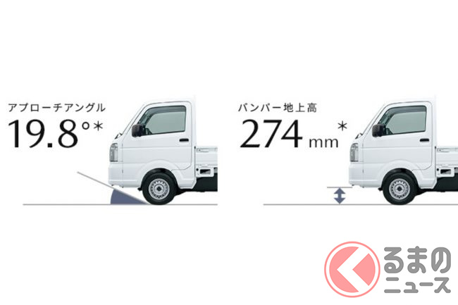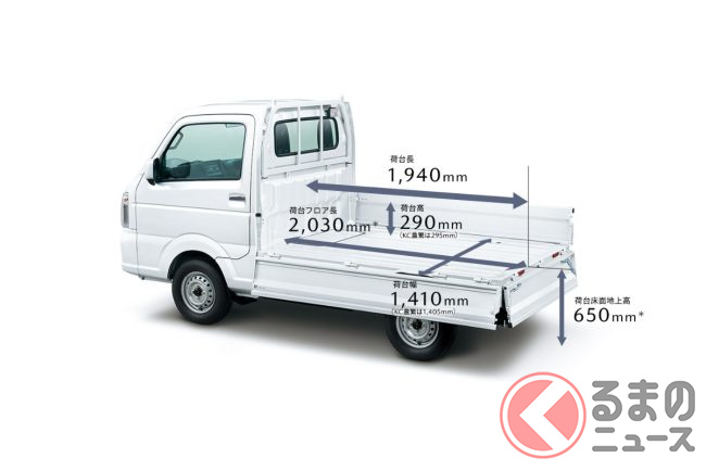 ボディサイズは全長3700mm×全幅1810mm×全高2530mm。軽トラックならではのコンパクトさと、最小回転半径3.6mによる取り回しの良さが特徴です。