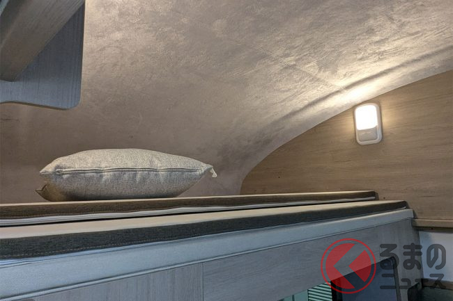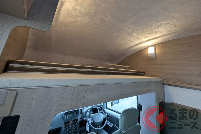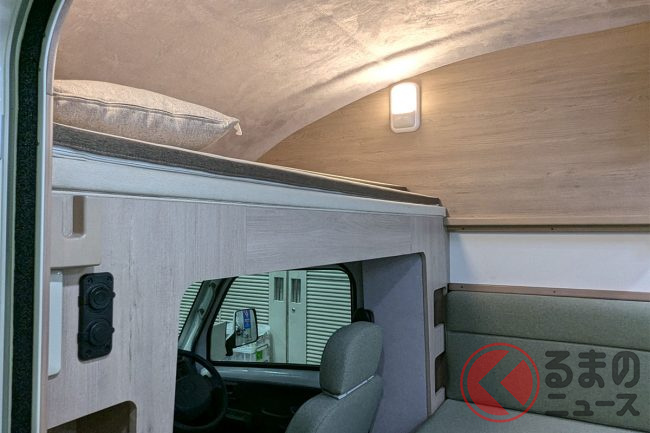 ベッド展開は約15秒と手軽で、「(運転席上の)バンクベッドを展開すれば奥行き2mのスペースが生まれ、上下で2名ずつゆったりと休めます」とのこと。