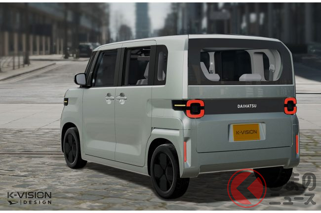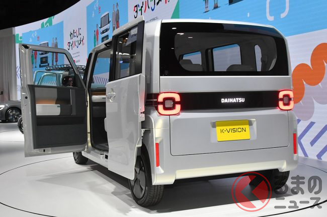 ダイハツ「すごい軽ワゴン」世界初公開! カクカク“箱型”スタイル×「斬新ドア」採用! パワフル&低燃費ユニット初搭載の「K-VISION」とは!