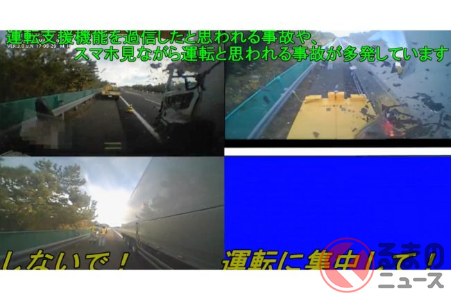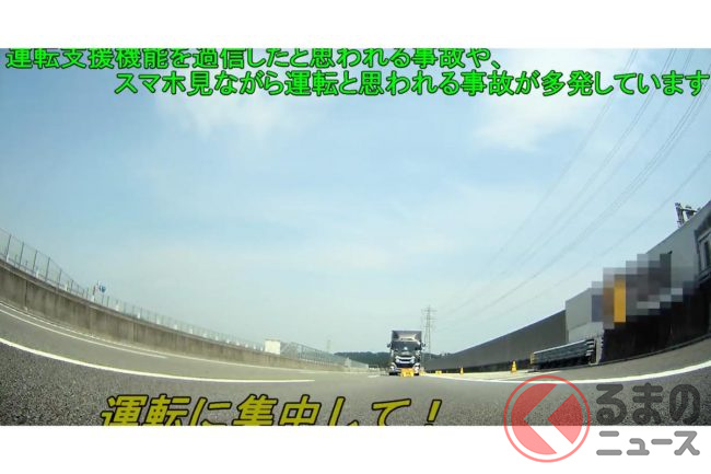 NEXCOは動画とともに、「渋滞最後尾での追突事故は、車間距離が不十分であることが要因として挙げられます。高速道路では特に、急な速度低下や渋滞最後尾に対応できる、安全な十分な車間距離を保持して走行してください」と警鐘を鳴らしています。