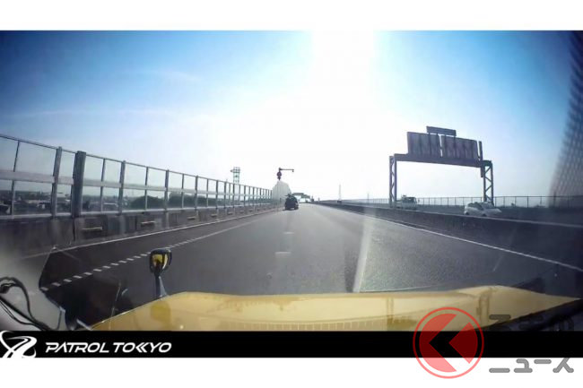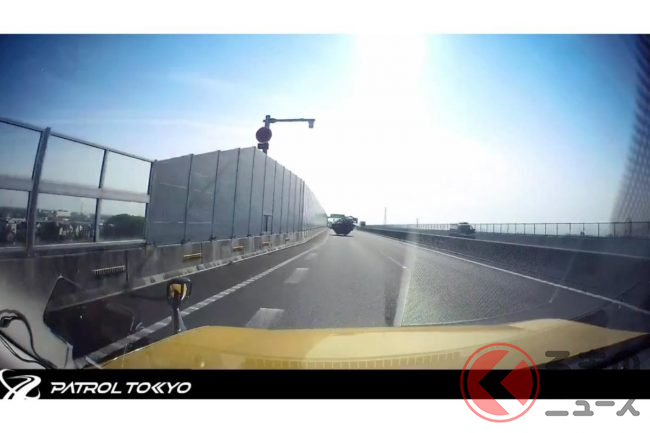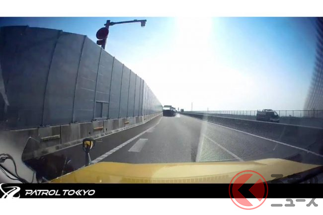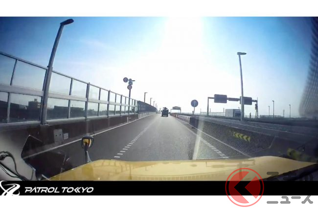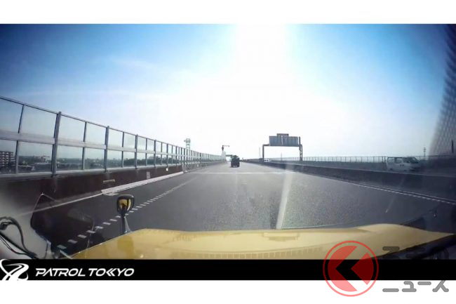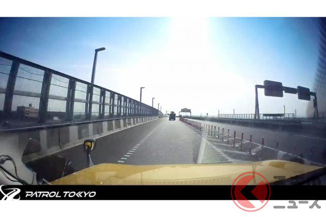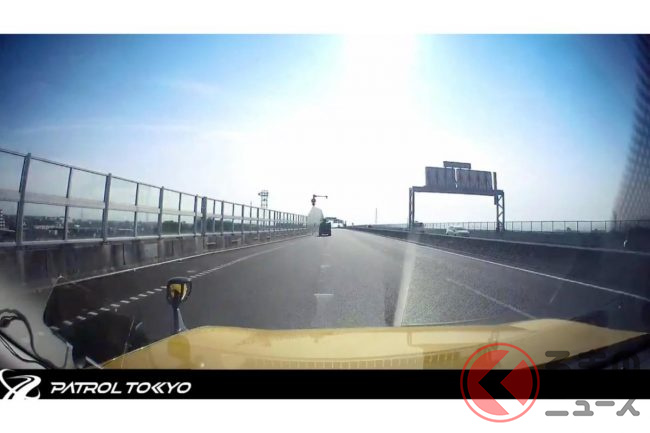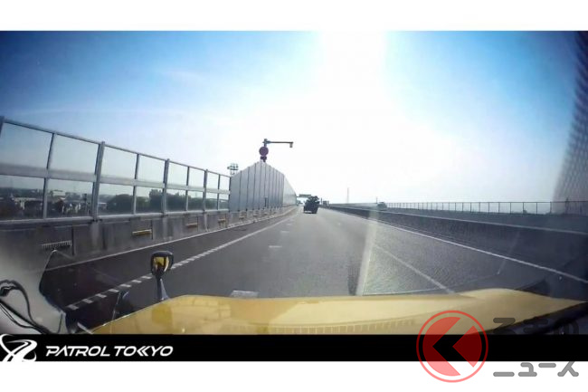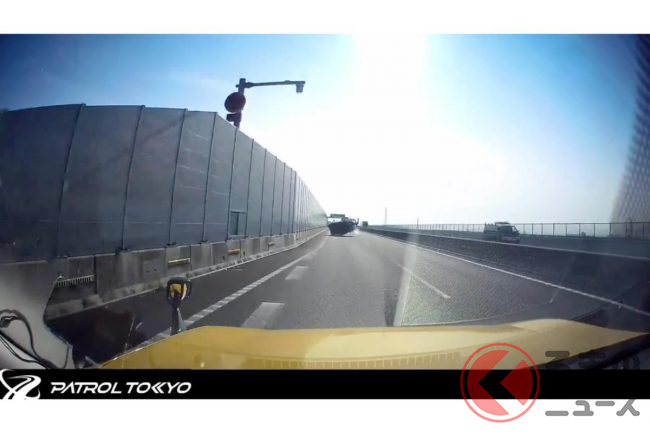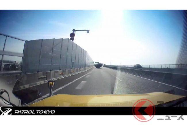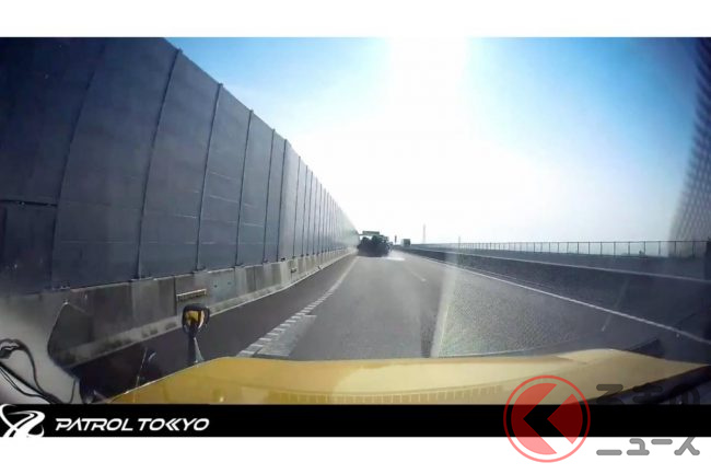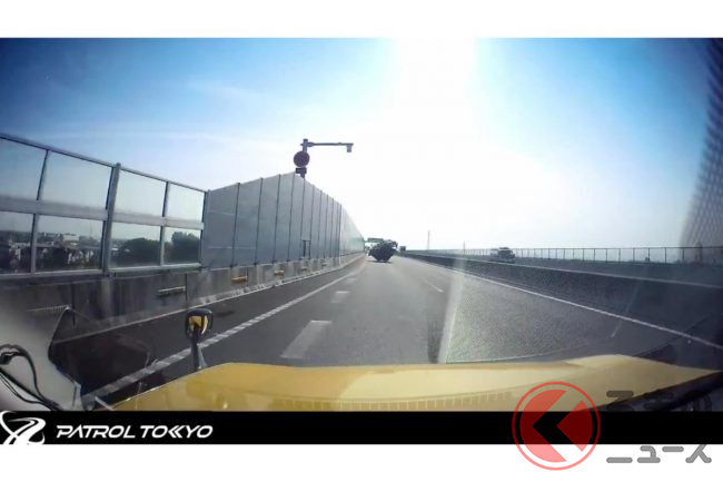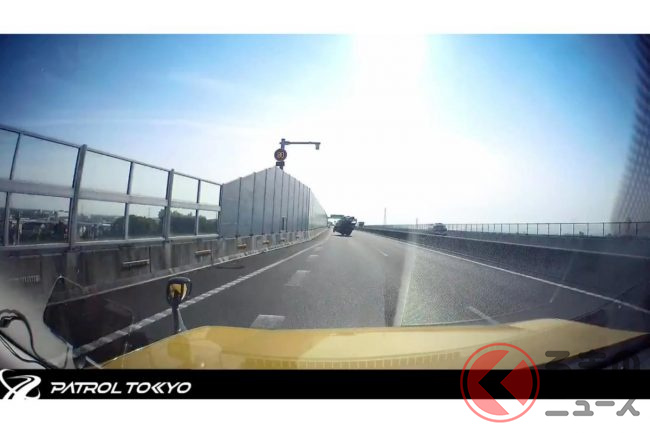 一部始終を真横で目撃していたパトロールカーはすぐさま赤色灯を点灯させ、減速。ここで映像は終わります。