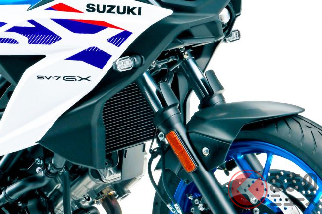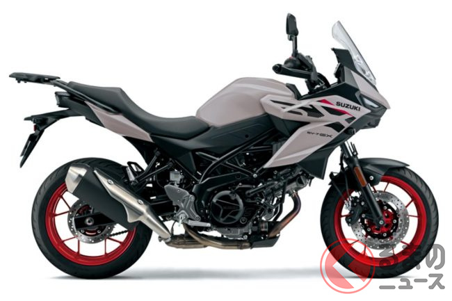 新型SV-7GXは、スズキにおける最上位クロスオーバーバイク「GSX-S1000GX」のコンセプトやデザインを受け継ぐ、ミドルサイズのクロスオーバーバイク。