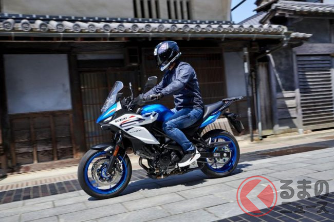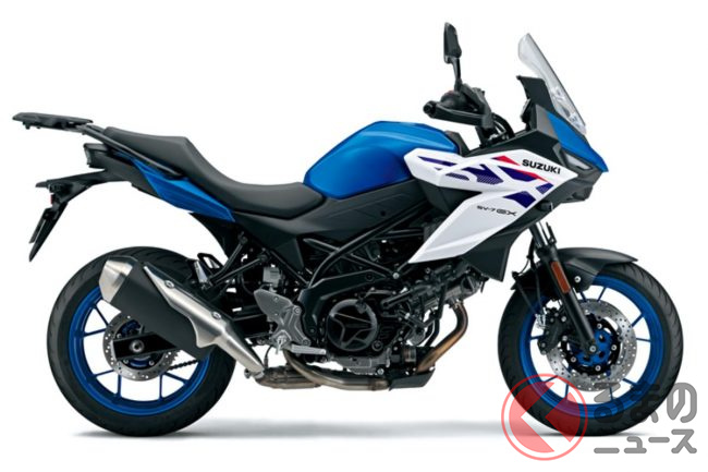 スズキ新型「“Vツイン”大型バイク」世界初公開! めちゃ扱いやすい「645cc」エンジン搭載で“ちょうどいい”! 街乗りからツーリングまで楽しめる「新型SV-7GX」伊国で発表!