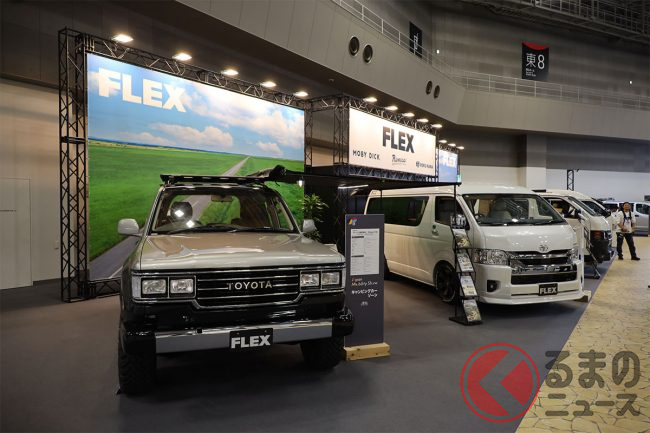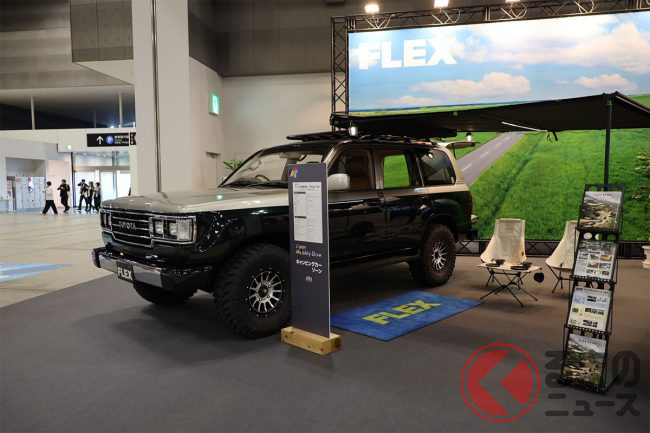 トヨタ「ランドクルーザー」や「ハイエース」などのコンプリートカー、カスタムを手がける「FLEX」が、東京ビッグサイト(東京都江東区)で2025年10月30日~11月9日に開催されている「ジャパンモビリティショー2025」に出展し、「ランドクルーザー100」をベースとしたキャンピングカー「106」などを展示しています。