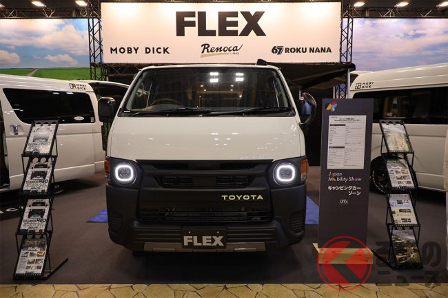 ランドクルーザーやハイエースをベースとしたキャンピングカーを数多く手掛けてきたFLEXですが、今回の「ジャパンモビリティショー2025」ではその最新作である「106」を筆頭とした人気モデルを出展しました。