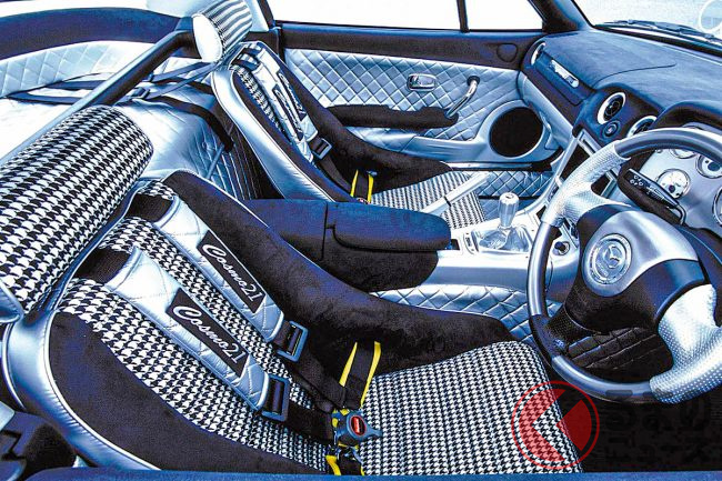 インテリアにはダイヤキルトや千鳥格子柄のシートを採用し、黒とシルバーを基調とした未来的な空間を演出。ベース車の面影を残しつつも、コンセプトカーらしい華やかさを備えていました。