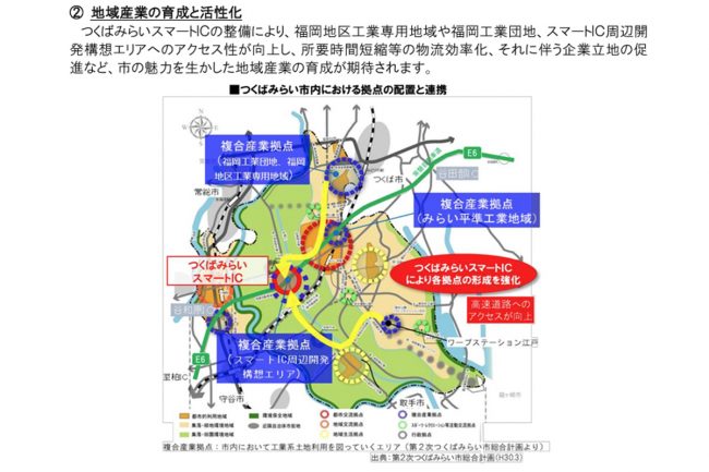 つくばみらい市内には、福岡工業団地や福岡地区工業専用地域、そしてスマートIC周辺開発構想エリアといった複数の産業拠点が存在します。
