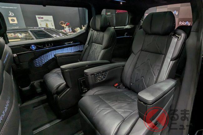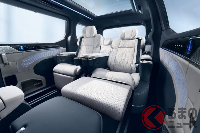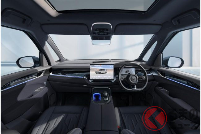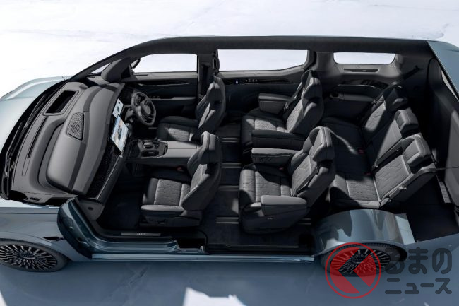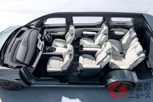 インテリアは、中央に大型モニターを配置したシンプルなコックピットが目を引きます。レイアウトは3列6人または7人乗りで、航空機のファーストクラスを思わせる上質なシートを採用。