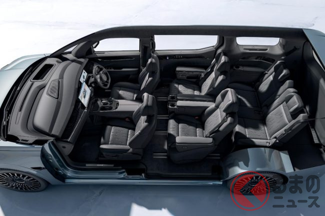 斬新「4WDミニバン」日本初公開! “アルファード超え”ボディ&「めちゃ豪華内装」の“3列6人/7人乗り”仕様! キラキラの“ド迫力顔”が目を惹く! 26年発売のジーカー「009」って?