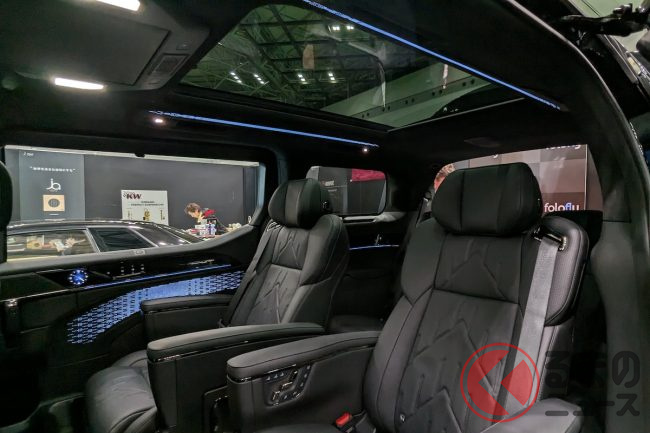 ボディサイズは全長5209mm×全幅2024mm×全高1812mm、ホイールベースは3205mmと、トヨタ「アルファード」(全長4995mm×全幅1850mm×全高1935-1945mm、ホイールベース3000mm)よりも全高を除いてすべてのサイズが上回っており、その存在感は圧倒的です。車体にはジーカー全車種に共通する「SEAプラットフォーム」を採用しています。