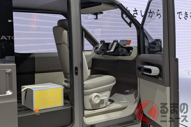 では、KAYOIBAKO-Kは、具体的に、どのようなクルマなのでしょうか。ダイハツの担当者は「次世代の商用BEVバンの提案です」と言います。