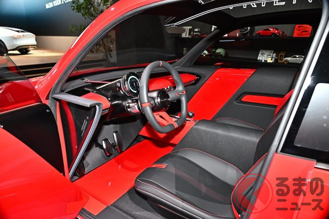インテリアは、いろいろな要素を排除していき、円形のメーター以外何もないようなデザインを追求。いまや人々の相棒とも言えるスマホを置き、シームレスにつながることで、このコンセプトカーの魅力が浮き彫りになるようにしたといいます。