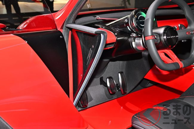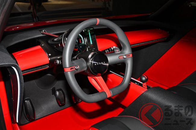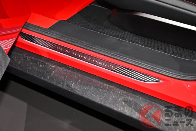 全長3.8mのマツダ新型「コンパクトカー」をJMS2025で初公開! 内装は単眼メーターの横に「スマホ置くだけ」!? “AI”と会話する未来すぎる「ビジョン クロスコンパクト」とは