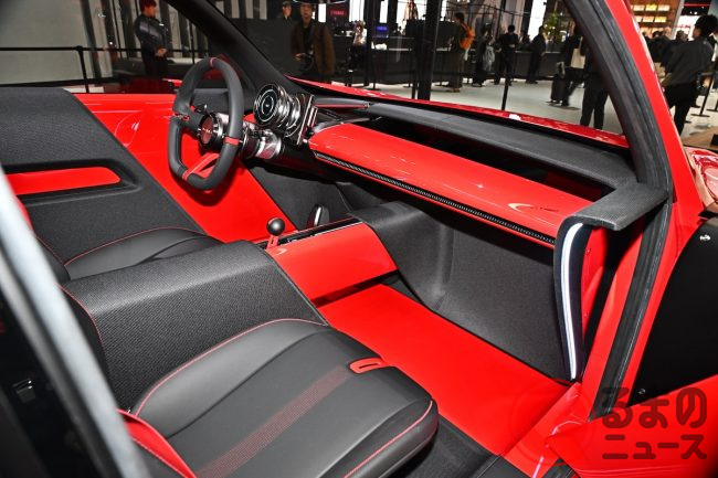 ボディサイズは全長3825mm×全幅1795mm×全高1470mm。クーペ(全長5050mm)よりも全長が短いコンパクトカーで、「ネオ・オーセンティック」を表現したところ、思ったよりも上手くいったという感覚だそうです。