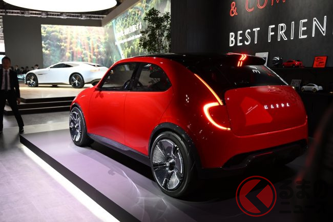 共感型AIが搭載され、人とクルマが会話(キャッチボール)しながらドライブや新しいカーライフを楽しめるMAZDA VISION X-COMPACT。非常にシンプルなエクステリアが印象的で、お尻がきゅっと上がったようなフォルムは、次期「MAZDA2(マツダ2)」を示唆しているような印象を受けます。