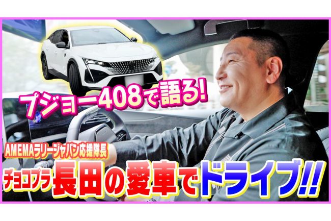 自身の愛車であるプジョー408のハンドルを握りながら、自身の「愛車トーク」を展開しました。