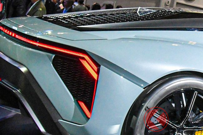 見るからにスーパーカー然としたスタイルはミッドシップなどではなくフロントにエンジンを搭載する車両であることを思わせ、またBピラーからCピラーにかけての処理や三角形になっているリアバンパー左右のデザインはかつてレクサスが販売した「LFA」を思わせる意匠。
