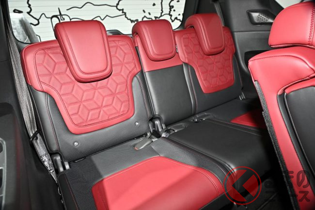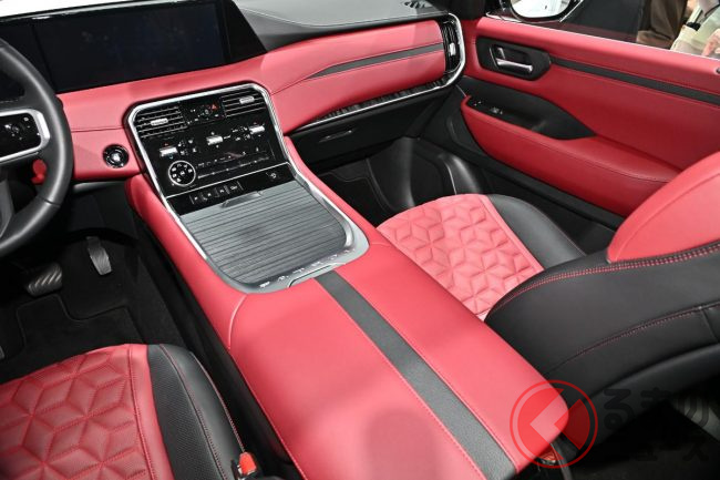 インテリアは高級SUVにふさわしい上質な空間を演出。ボルドーとブラックを基調とした室内は、快適さと最先端テクノロジーが調和するようデザインされ、上質なドライブ体験を提供します。