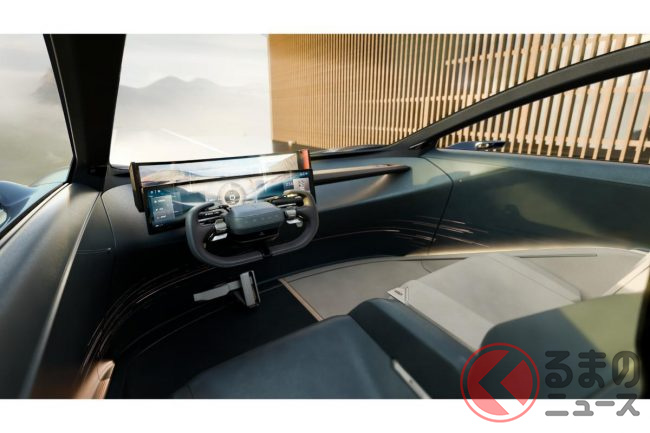走行中に車両前方を映し出し、疾走感を感じることもできますし、前列の乗員の顔を映し出して、まさにフェイスtoフェイスの会話を楽しむこともできるというのです。さらには車体後部にドローンを搭載しており、サーキット走行する自車を撮影することも可能とか。