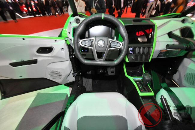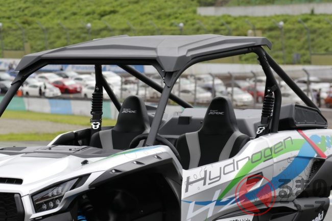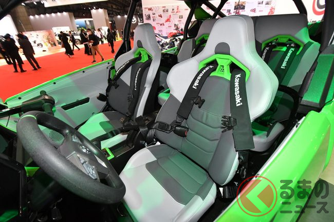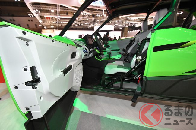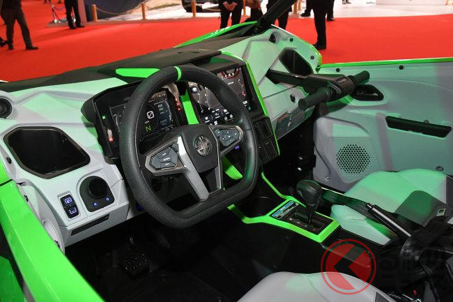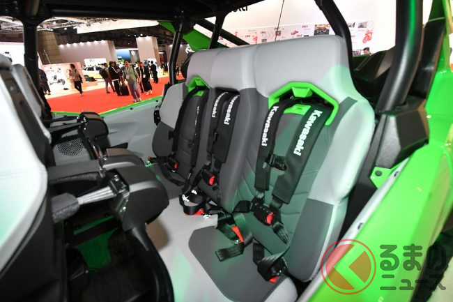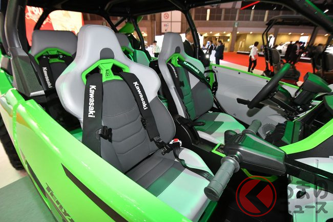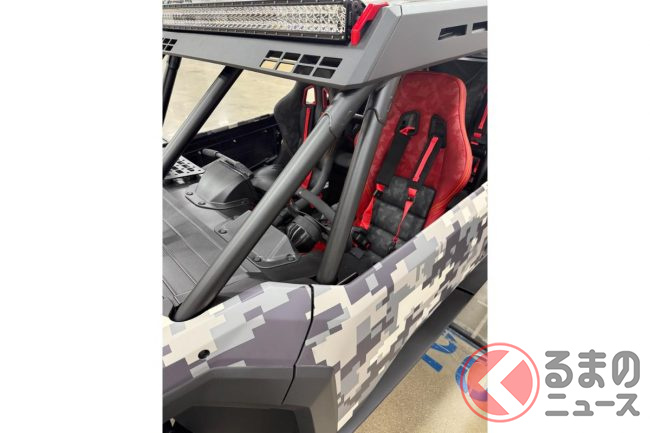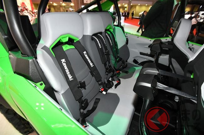 シートはフルバケットシートを4脚装備し、乗員を支える4点ハーネスのほか、助手席やリアシートにはグリップを備えるなど、過酷な走行でもしっかりホールドできるように設計されています。