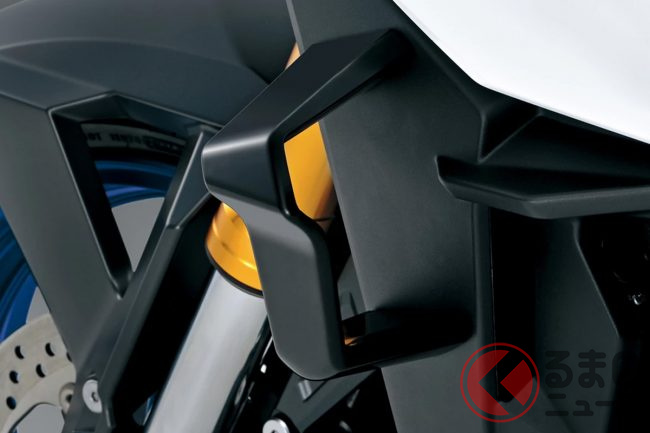 スズキ「新クロスオーバーモデル」登場! ウイングレットの装着で高速安定性を向上した「GSX-S1000GX」イタリアで公開 ミラーマウント改良で後方視認性もアップ