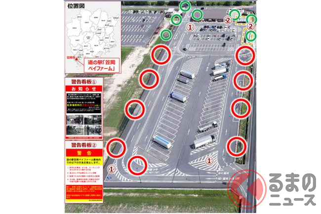 同事務所は「道の駅利用者が安全で安心して休憩できるよう、また、近隣にお住まいの方の安心な暮らしを目指し、関係機関が連携し迷惑行為対策に取り組んで参ります」としています。