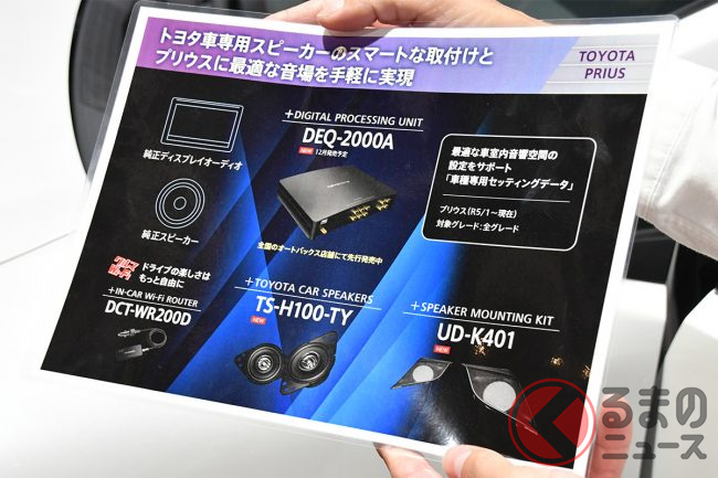 さらにサウンドの調整幅の狭い純正ディスプレイオーディオに組み合わせることで、高度な音質調整を可能とするデジタルプロセッサー(DEQ-2000A)も搭載しています。現行プリウス用には車種専用セッティングデータも提供されているので、これを適用すればカロッツェリアが作り上げた理想の音響空間を即体感できるのもうれしいポイントです。