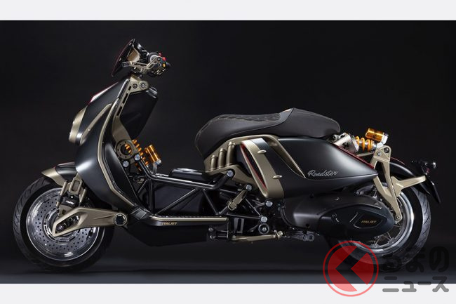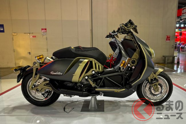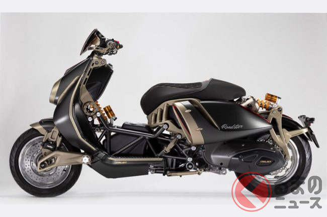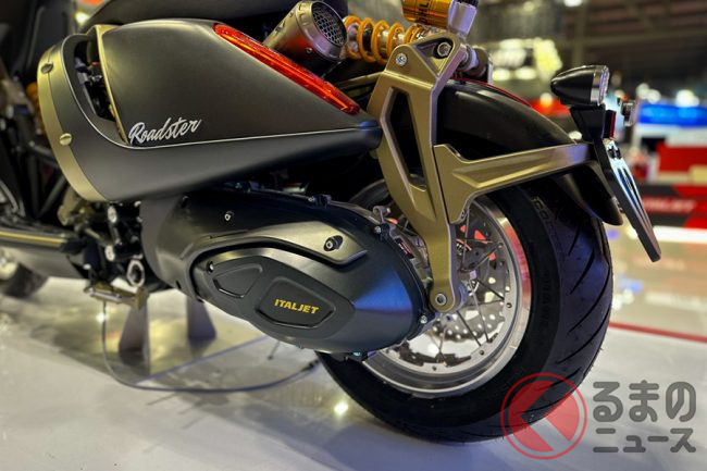 新型「ロードスター400」世界初公開! 「クラシック」デザイン×400ccパワフルエンジン搭載! 個性炸裂の“新たなスクーター”イタルジェットがイタリアで披露
