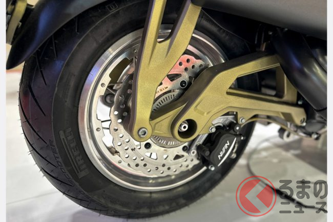 ブレーキシステムも強力で、フロントホイールキャリアにはニッシン製のラジアルマウントタイプのキャリパーが装着され、ブレーキディスクには大型化されたペタル(花弁形)タイプが採用されており、高い制動力を期待させます。