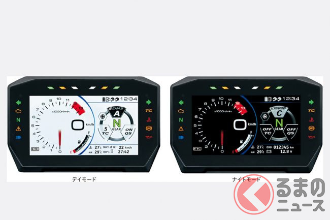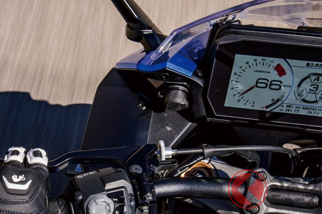 メーター部にはスマートフォン連携機能を備えた大画面フルカラーTFT液晶が採用されています。