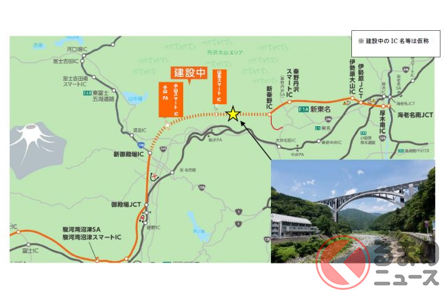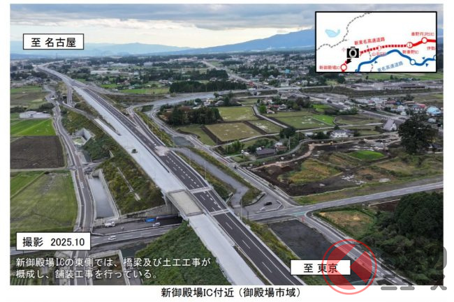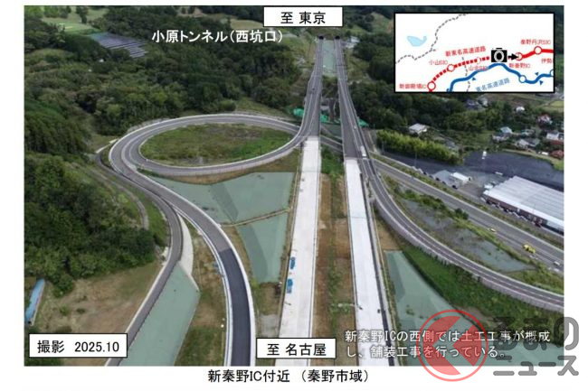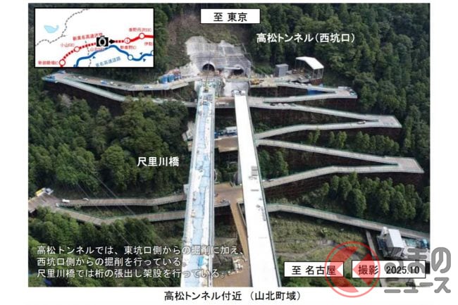 2025年11月5日にNEXCO中日本は、新東名高速道路の最後の未開通区間である新秦野インターチェンジ(IC)~新御殿場IC間の建設状況(2025年度時点)を伝える動画を公開しました。