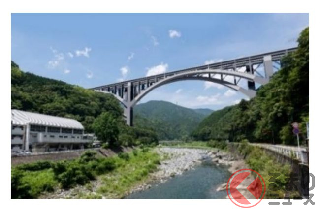 山北天空大橋(やまきたてんくうおおはし) (建設中名称:河内川橋) 国内唯一の「鋼・コンクリート複合バランスドアーチ橋」で、橋脚と橋脚の間の距離(支間長)は最大220mと国内最大級。