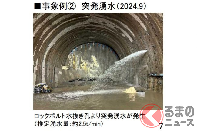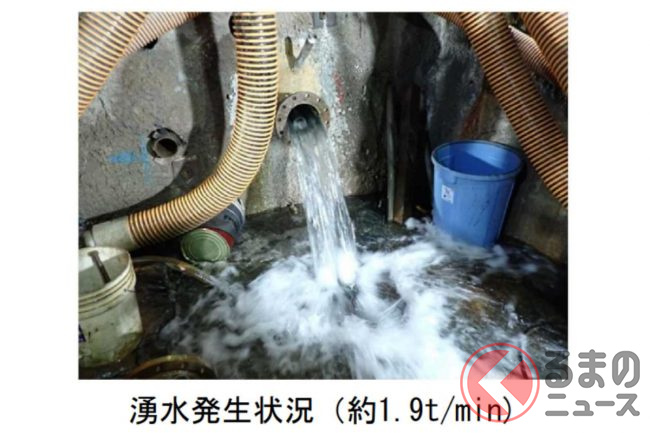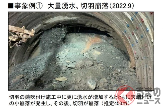 動画では、湧水が激しく噴き出す様子や、崩落した土砂がトンネルを塞ぐ生々しい映像も公開されています。