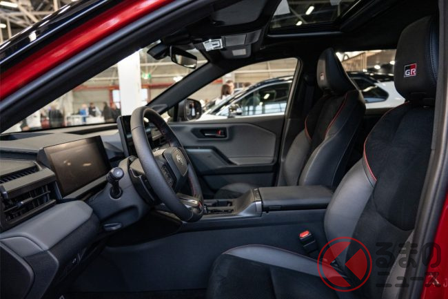 GR Sportでは、レッドステッチを配した合成皮革×スエードの専用シートに加え、アルミペダルやスエード仕上げのニーパッドを装備し、スポーツマインドを強調します。